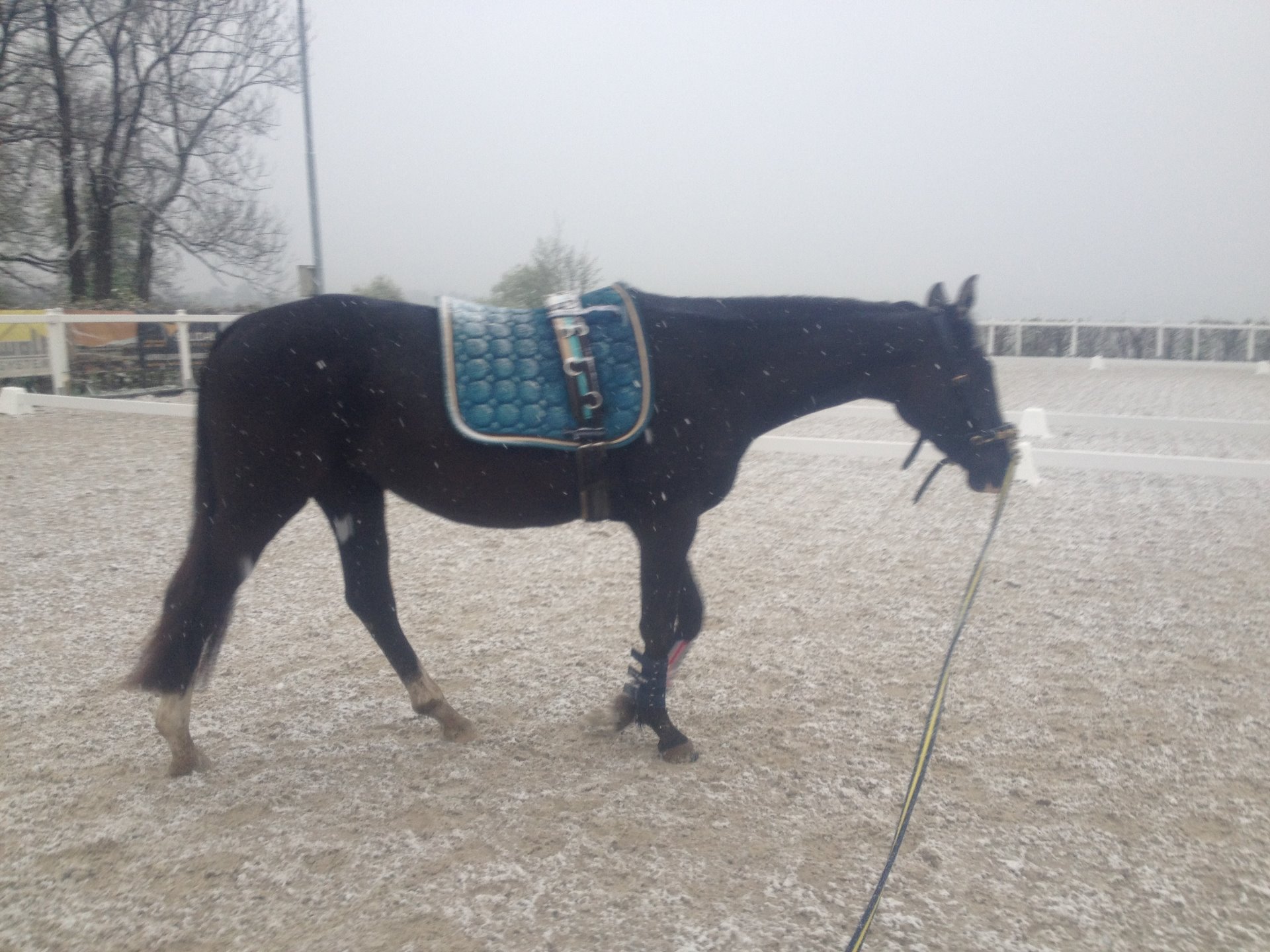 Sie wurde im Spätwinter aber auch immer frecher und ich hatte Mühe sie beim Führen im Zaum zu halten. Erste Spazierversuche in Begleitung ihrer neuen Pferdekollegen verliefen stressig. Sie war übermütig und nervös. Somit habe ich dann das Spazieren im Winter erstmal eingestellt. Es war mir zu gefährlich. Ich habe mir dann Hilfe von einer Bekannten...