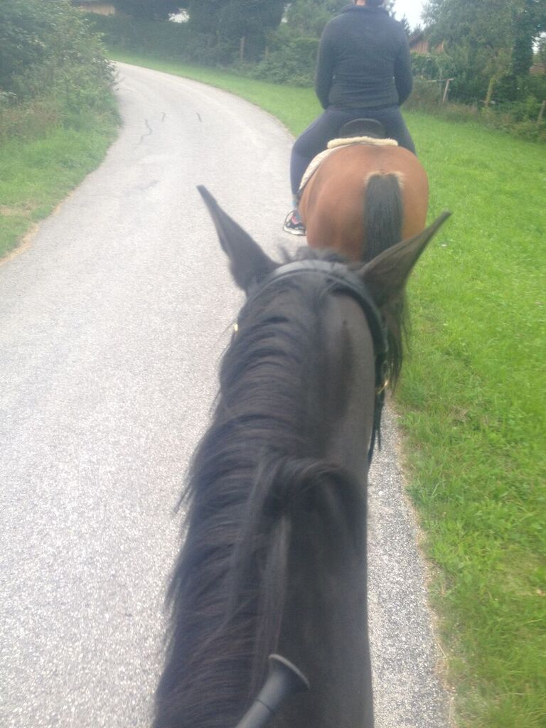 Da es in der Halle mittlerweile recht gut klappt hab ich das Okay von meiner Trainerin bekommen eine kurze Schrittrunde mit einer Stallkollegin und ihrem ruhigen Wallach draußen zu gehen. Darüber habe ich mich sehr gefreut, war dass doch das Ziel bald rausgehen zu können mit Laser. Zum einen weil ich kein reines "Sandkastlpferd" haben will und so...